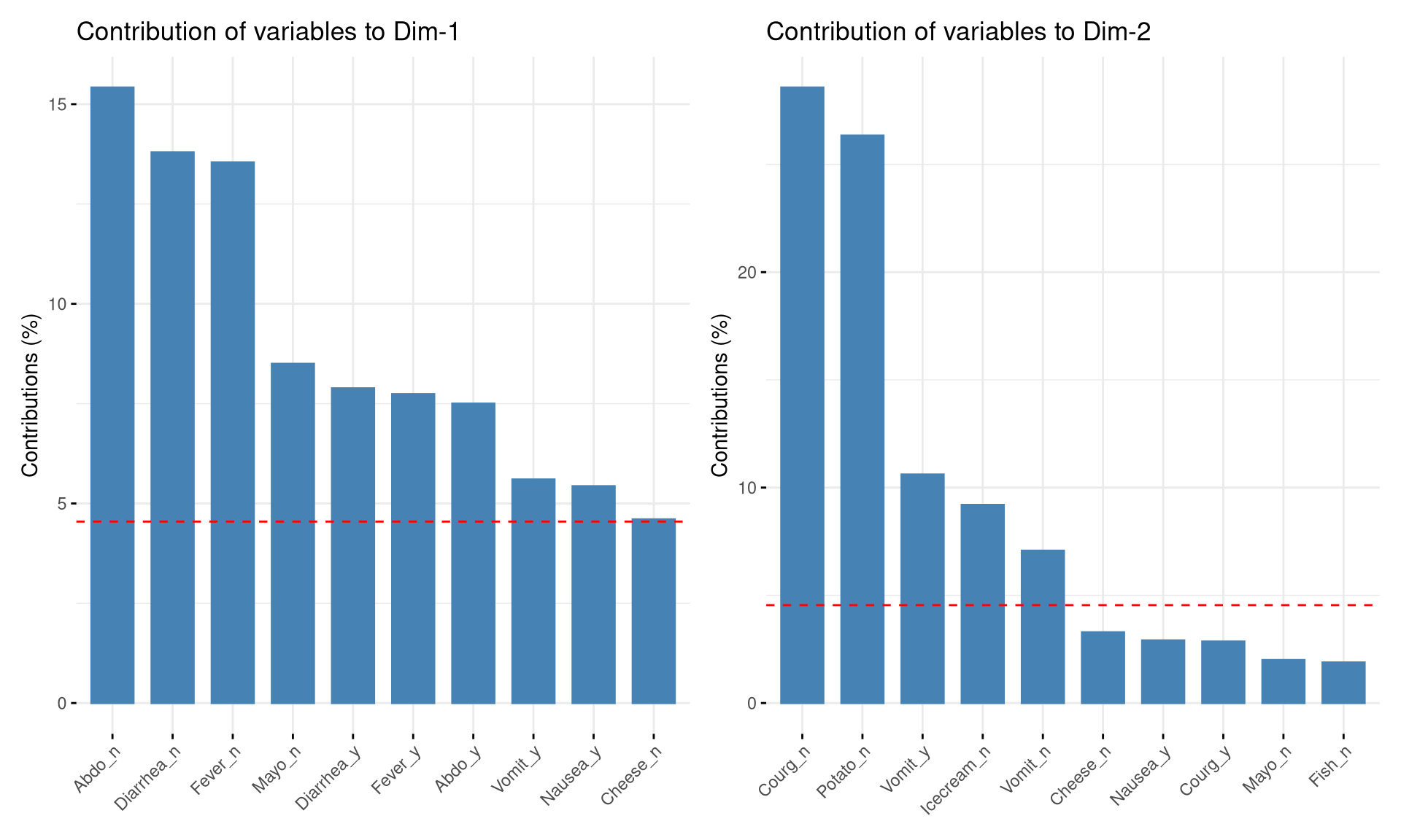 Figura 19.3: Contribuições das categorias para as Dimensões 1 e 2 (dataset poison).